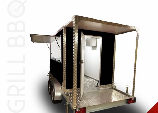 Vous souhaitez réaliser du fumage à froid, du fumage à chaud, de la grillade, vous souhaitez proposer du poisson, de la viande, du poulet grillé, des ribs, des légumes au BBQ, du snack grill, des burgers de compétition… ? La remorque Grill BBQ est faite pour vous. Ce modèle de remorque BBQ vous offre un des espace de travail le plus important de sa catégorie. De plus cette remorque grill Bbq bénéficie d’un espace ouvert à l’arrière destiné aux cuissons spécifiques de type grill, BBQ, fumoir, broche…. Ainsi, vous pouvez séparer votre cuisine en deux avec une partie fermée et une partie ouverte, toujours en respectant les normes sanitaires. Point Important, dans le cadre ou de l’équipement CHR est fixé à l’arrière de la remorque en partie ouverte, nous vous proposerons alors l’option fermeture latérale sécurisée sur hayon (surface pleine ou surface grillagée).